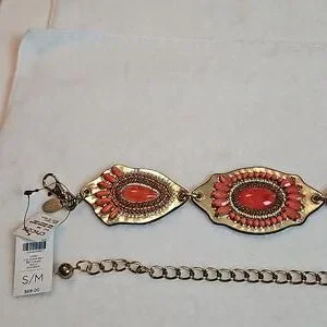 Chico's | NWT Women's Multi Avery Beaded Gold Chain Leather Belt Sz S/M