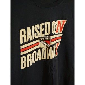 Raised On Broadway Mens XL T Shirt Rangers Ring Spun Navy Blue Large Graphic
