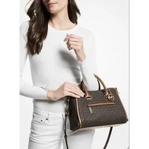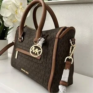 Michael Kors Carine Logo Brown Satchel Zip top bag