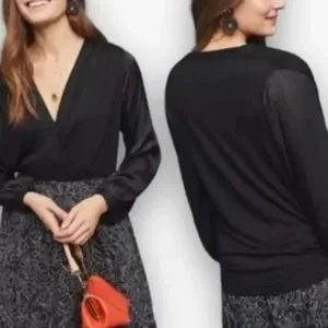 NWOT ANTHRO | Kesia Surplice Mixed Media Blouse