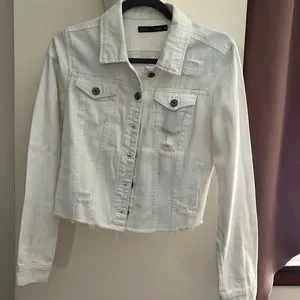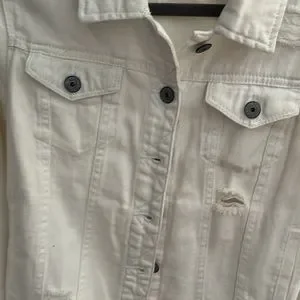 White jean jacket size medium distress look only wore one time in excellent condition