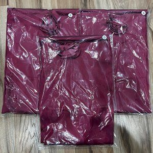 Would you say the color is more purple true to the models picture or more burgundy like your photo of the dresses in the plastic?