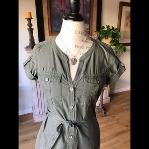 H&M L.O.G.G. Adorable Army Green Well-Engineered Safari Military Dress Sz. 10