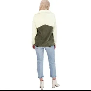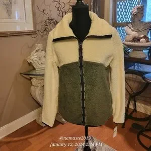 Lucky Brand Women's Faux Shearling Colorblock Jacket with Stand Collar #692
