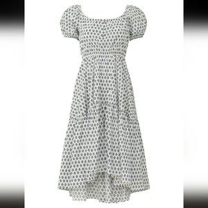 CAROLINE CONSTAS | NWOT Bardot Flounce Midi Puff Sleeve DesignerDress (Size S)