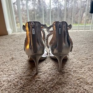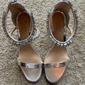 Badgley Mischka NWOT Jewel Collection Silver Heels With Crystal Ankle Straps 8.5