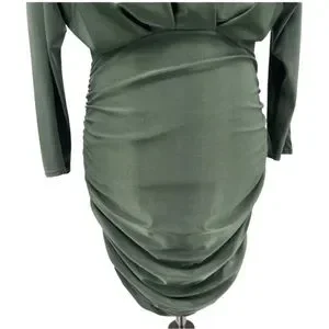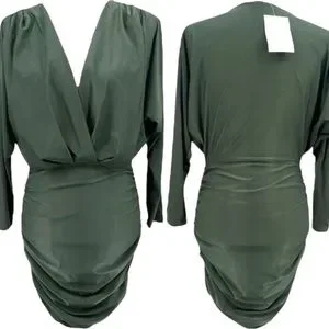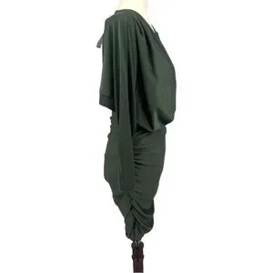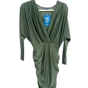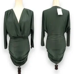 SOLD! Olive Green Surplice Batwing Midi Ruched Long Sleeve Dress Size Medium/8