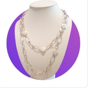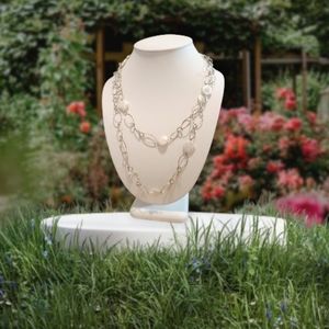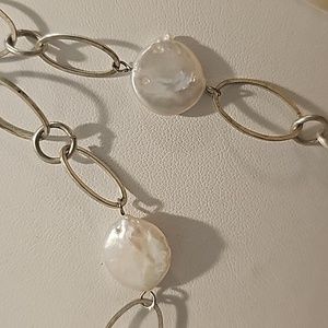 Rosy White FWP Fresh Water Blister Pearl Oval Link Vintage Necklace.