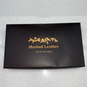Mashad Leather Mens or Ladies wallet with id slots plenty of card slots and a nice wallet and a place where you can keep your passport. This item is new with tags and original box.