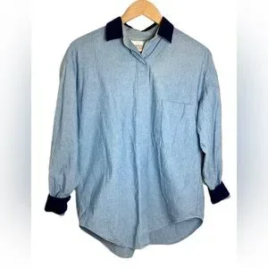 Vtg Whitney Lang Chambray Shirt Size 8 Corduroy Contrast Trim Relaxed Country