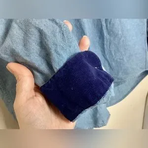 Features: Contrast corduroy trim on collar and cuffs, chest pocket.