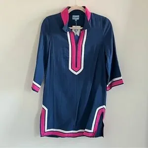 Never worn original price 200, Blue with pink and white trim les canebeirs dress tunic top