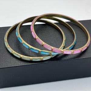 INDIA MOP Shell Inlay Brass Bangle Stacking Boho Bracelet Lot Bollywood