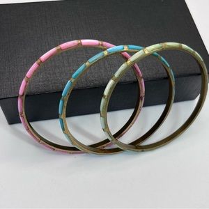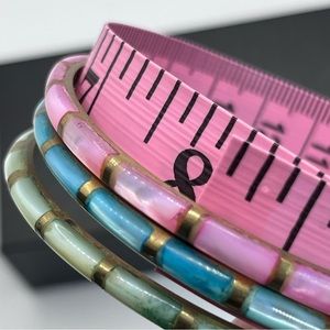 Set of 3 vibrant Bohemian bangles in pink, blue and green.