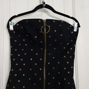 Vintage Betsey Johnson Women's Dress Black Denim Studded Zip Strapless Y2K 90s