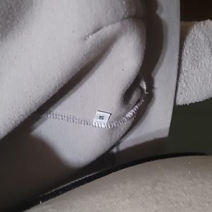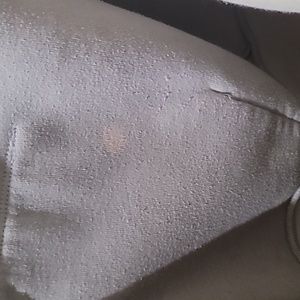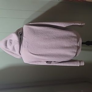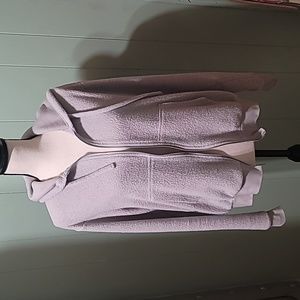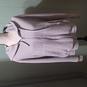 Gray hooded zip-up jacket size small. There is a pink spot on the inside of the jacket. One of the pictures shows it. Well loved jacket always washed in cold water and lined dried