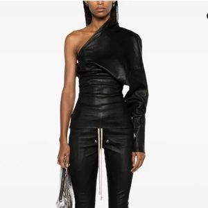 Rick Owens NWT FW23 Excellent Luxor one-shoulder top Lambskin Leather Black IT42