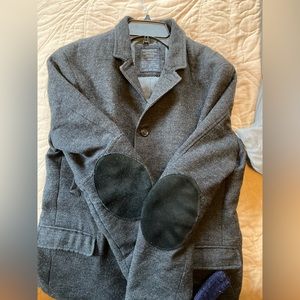 Heavily used Allsaints wool jacket. This has been customized with elbow patches. Both arm inseams are ripped and will need to be replaced. Inseam bottom is torn. Minor tear on the back. Please see pictures regarding these defects. Feel free to reach out with any questions. I’m hoping someone can transform this back into it’s formal glory.