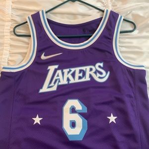 Mens size Small Nike NBA Los Angeles Lakers City Edition Lebron James 6 Dri-FIT Swingman Jersey, worn once. Small stain on number, front of jersey as seen in photo. Just noticed this, have not tried to remove stain.