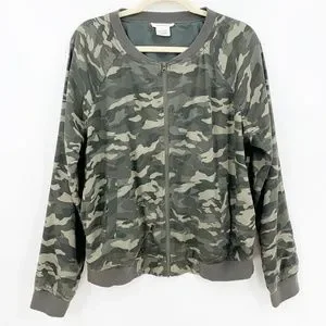 Beachlunchlounge Olive Green Camo Bomber Jacket Sz L
