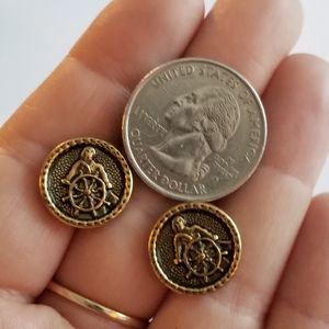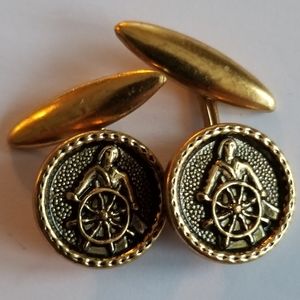 Relisted - Vintage cuff links gold tone sailor ship wheel button cufflinks