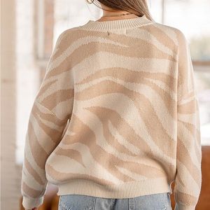 Beige Zebra Print Knit Sweater- Size XS- NWOT