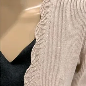 Like new and still in excellent condition! No closure, open front midi length duster. Notched side slits in the hem.
