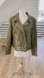 NWT Colleen Lopez, olive green biker, faux leather floral, embroidered jacket