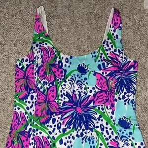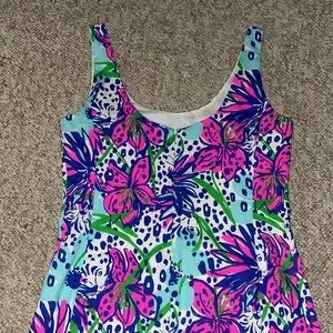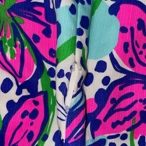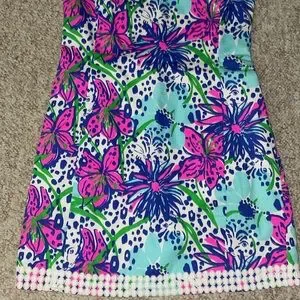 There is a small hole in the fabric at the button of the zipper but other then that the dress is in great condition