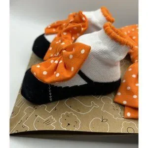 Fall Halloween Hat Socks Baby Girl Gift Set Orange Black Bow Polka Dots 0-6M New