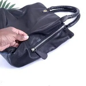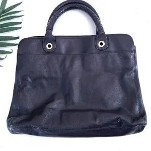 Elie Tahari Black Leather Shoulder Bag Braided Handle