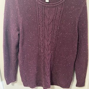 Excellent condition. Very warm cable knit sweater in pretty purple speckled with multicolor ( very tiny) to add texture and style. Great quality winter wardrobe staple. Smoke free seller
