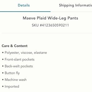 Anthropologie Maeve Plaid Wide Leg Pants Size 8