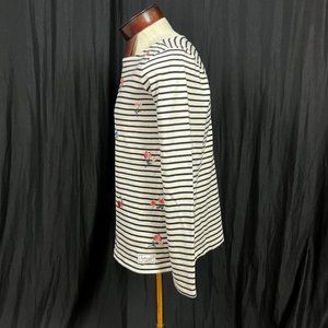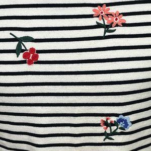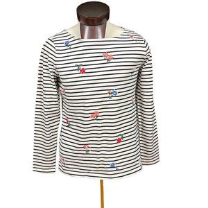 Talbots Striped Floral Long Sleeve Boat Neck Embroidered Pullover Shirt