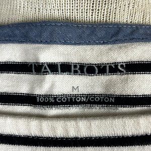 Talbots Embroidered Flowers Black White Striped Top Long Sleeve Size M
