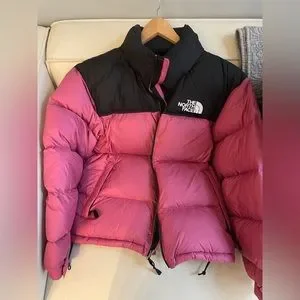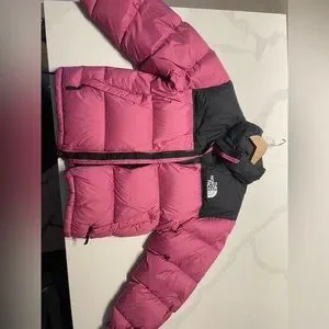 Pink North Face Puffer Jacket (worn once). Size medium. Less than a year old.