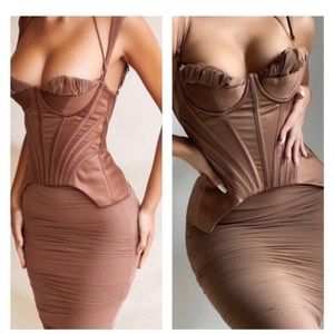 ❌SOLD❌House of CB Talya Toffee Corset Midi Dress