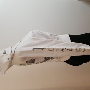 pant drawstring waist unstretched is 15" inseamis 32".Black, white,silver bling on front and down the leg is 1976. Fabulous for a cruise, vacation or just every day.💗🔥