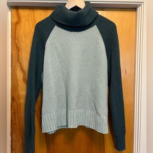 Madewell sweater size large. Has a super cute cutout in back. A seafoam and dark teal color, maybe worn once
