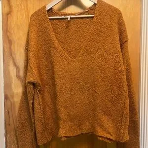 Free people cropped oversized sweater. V neck can be worn front or back, orange/burnt orange lightly worn