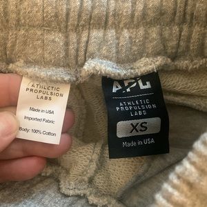 The APL perfect joggers take your style to the next level. Featuring 100% cotton Japanese terry, these are a great pre and post workout necessity. Elastic waistband and drawstring with a tapered fit and detail at ankles give these a super flattering fit. Four pockets to keep your hands free and your stuff secure. Fabric origin: Japan and Italy. Made in the USA.