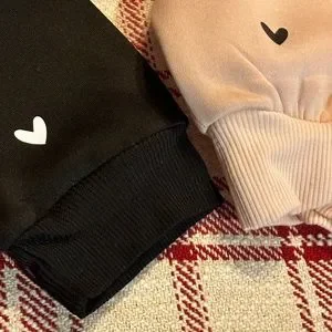 Women’s size medium sweatshirt, handmade, hearts on outside cuff, soft and light weight.