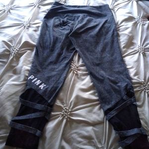 Pink Victoria's Secret yogo pants. Large, grey with black, corset trim on bottom, see pictures. Capri length.