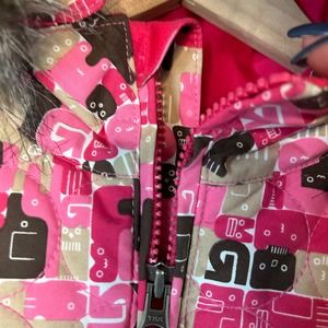Burton Dry Ride Sugar & Spice Full Zip Hooded Ski Jacket with faux fur on hood. Cute Valentine’s colors. Great gently-used condition.