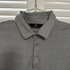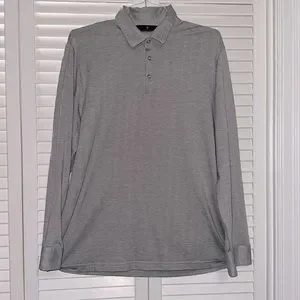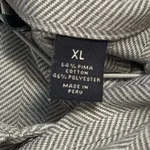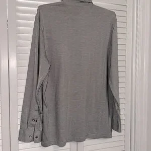 Men’s long sleeve grey herringbone pattern shirt with 3 snaps at collar and 2 snaps on each sleeve. Medium weight. Gently worn with no signs of wear