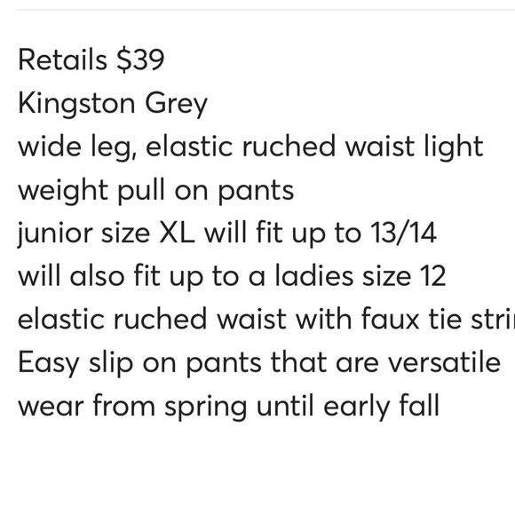 New Kingston Grey easy pull on pants ruched waist Juniors XL