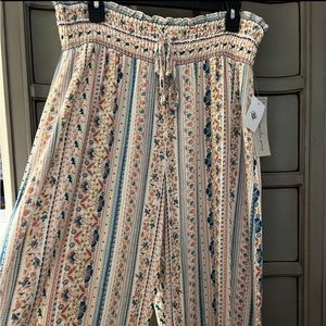 New and in new condition junior size XL they will be too big for a ladies size 8/10 Will also fit up to a juniors 13/14. Easy pull on pants with ruched waist and faux drawstring; lightweight material, soft colors, wide leg and higher at the ankle. Can be worn with a variety of summer shoes and also be worn as cover up beach pants..