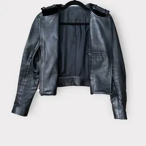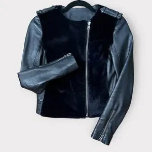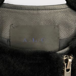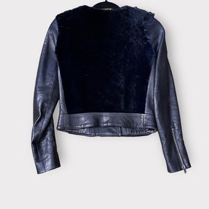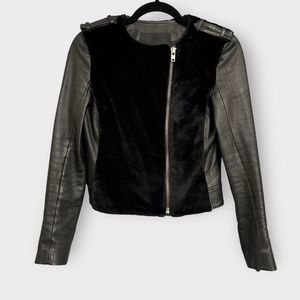 ALC Sadie Leather & Fur Jacket Women Size 0 Moto Black A.L.C. Biker Collarless