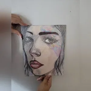 Colored Pencil Billie Eilish drawing on stretched canvas panel