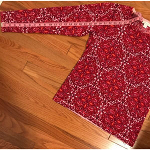 Garnet Hill Signature Merino Crewneck L/S Pink and Red Print Sweater